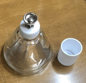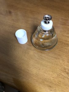 水を入れた状態です。水があまりにも少ないと、ハンドラップの上の部分を押した時に、水が出てこないので注意です。