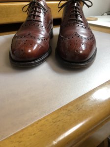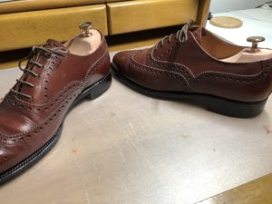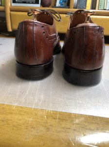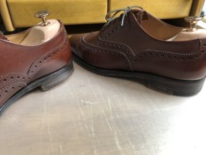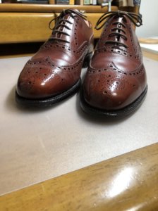 今回はこちらのAVON HOUSEの内羽フルブローグのコバが、削れて色も落ちてしまいかっこ悪いので、ケアしていきます。