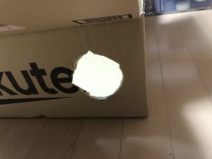ちょうどドライヤーが刺さる程度の穴を段ボールの側面にあけます。