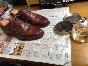 ちなみに最初の写真で、横にちらっと写っているのはtricker’sのモルトンです。とりあえずケアしていきましょう!