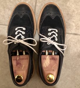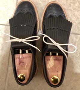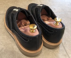 革を伸ばしてケアしやすくする為&靴の形を保つ為に、シューキーパーを入れていきます。