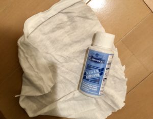 リムーバーを柔らかい布に数滴つけて、靴の表面(スエード部以外)の汚れを落としていきます。
