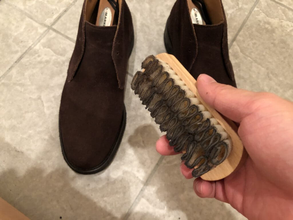 まずは豚毛ブラシでスナップをきかせて、汚れなどをかき出します。