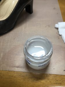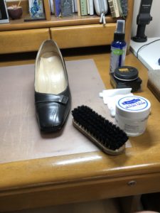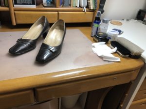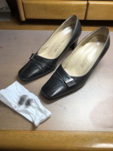 今回ケアするのはこちらのバンプス。この写真からは非常に分かり難いですが、縫い糸が白で色付きの靴クリームは使ったことがないとの事。
