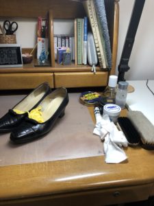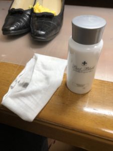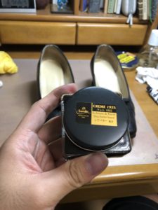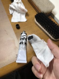 クレムを薄く塗って5分くらい置いたら、豚毛ブラシでブラッシングし、柔らかい布で磨きます。