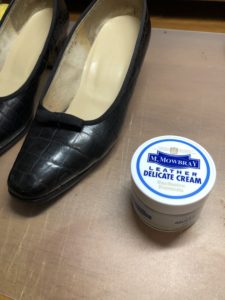 アッパーのケアをしていきましょう。これはお馴染みのM.モウブレイのデリケートクリームを使っていきます。