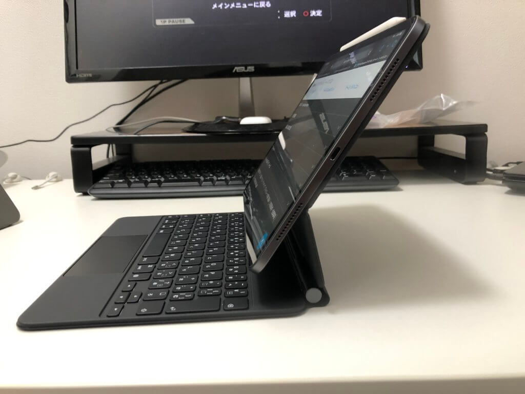 もう少しヒンジ可動域が広い方が嬉しいです。ただsmart keyboard folioの2段階よりは全然良いです。