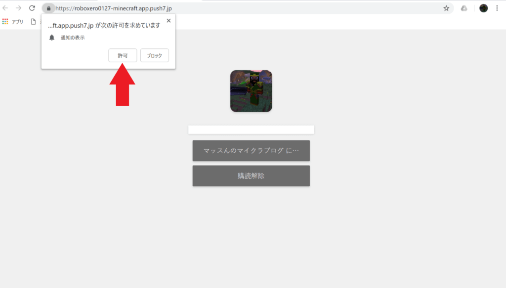 ******が次の許可を求めていますと書いてある下に、許可と出るのでクリック!