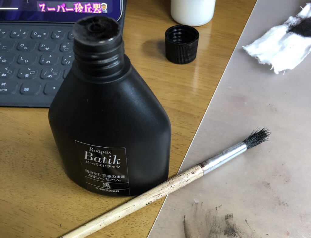 今回もローパスバチックの黒を使います。塗るのは筆でも布でもいいです。