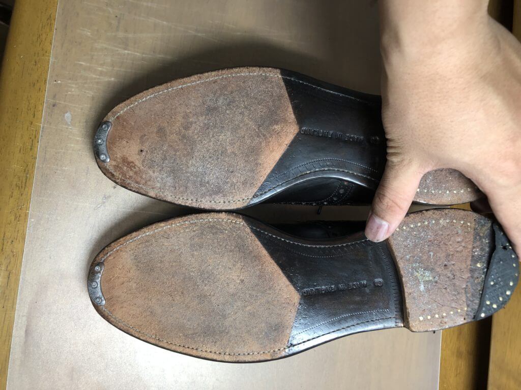 今回は実験靴であるAVON HOUSEの内羽根フルブローグを使って、半カラス仕上げを再現してみようと思います。