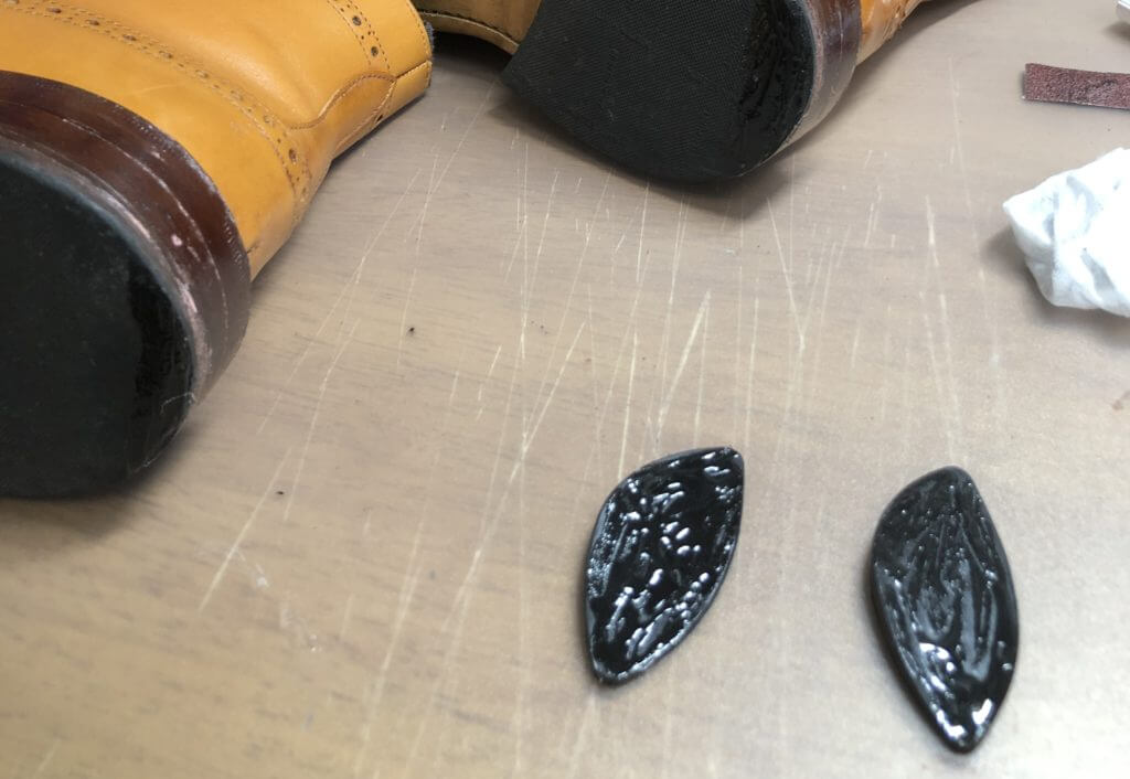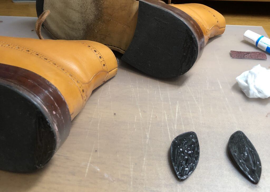 (いつもお世話になっている靴修理屋さんに聞いてみたら、Mrミ○ットさんが踵修理に使う素材がかなり柔らかいからだそうです。)
